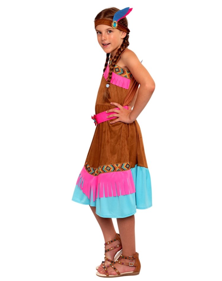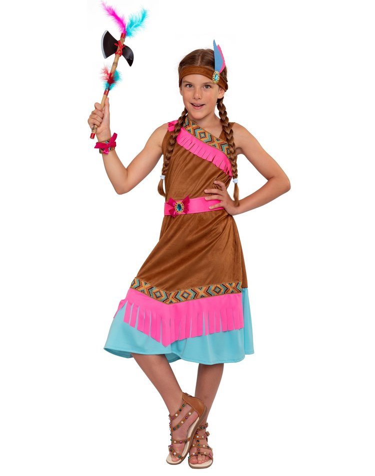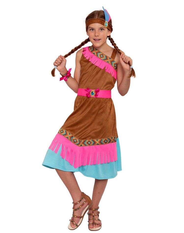 Indianenpak voor meisjes: indianen jurk voor kinderen en een indianentooi en riem.