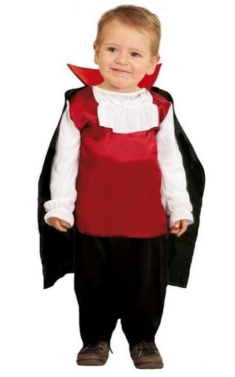 Zoekt u een compleet vampier kostuum voor een voordelige prijs, dan hebben wij bij Magicoo precies wat u zoekt. Dit vampier pak is bedoeld voor de kleinsten en dan hebben we het over baby's en peuters. De rode top met kraag, broek en cape maken dit vampier kostuum compleet. Nog een beetje make-up erbij rond de ogen en de lippen en u hebt de vampiers look klaar.