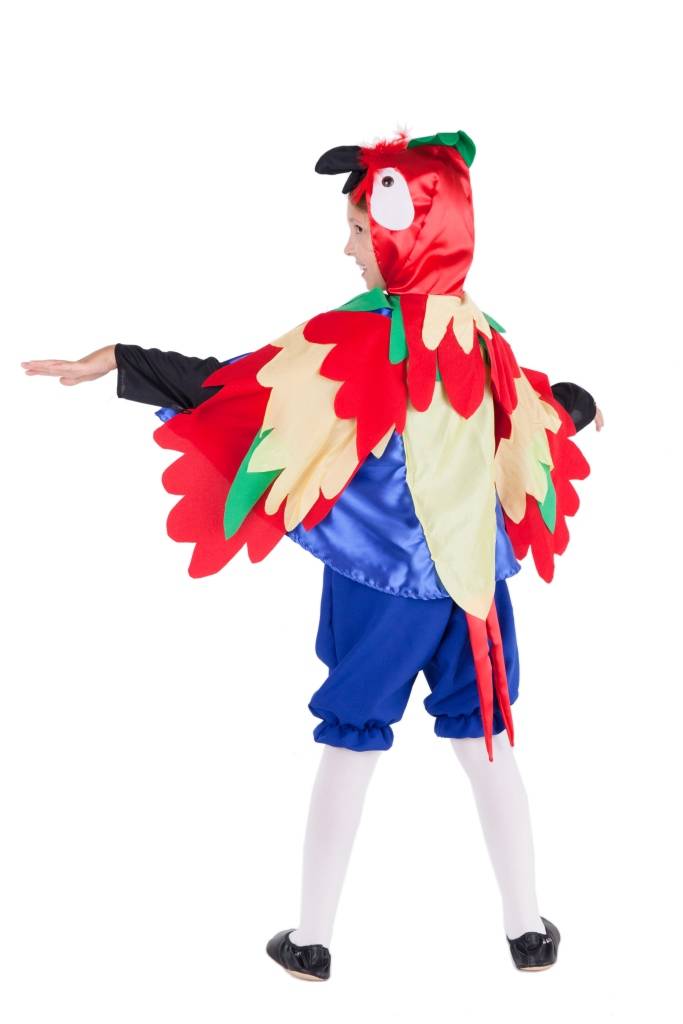 Levering: Papegaaiencape met vleugels en muts en een broek.