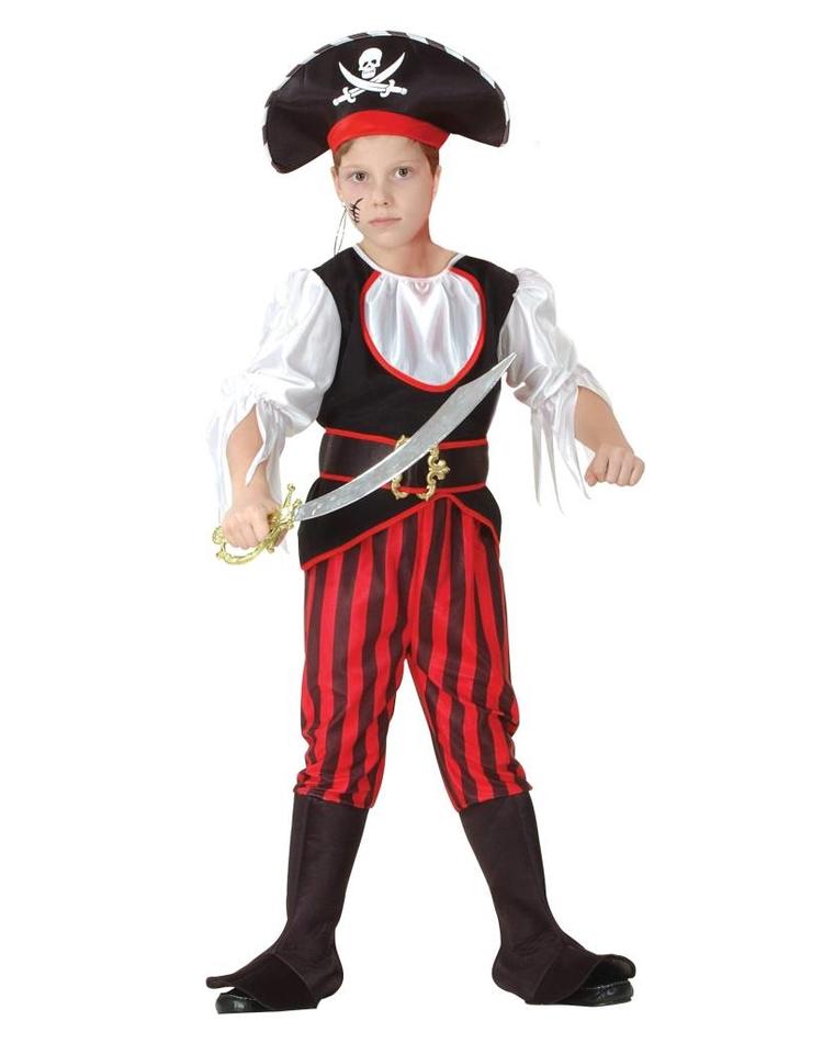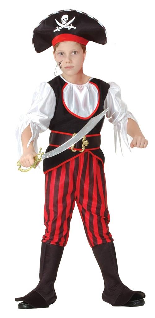 Levering: piraten pak: shirt, broek, riem, overschoenen en een piratenhoed. (zonder zwaard).