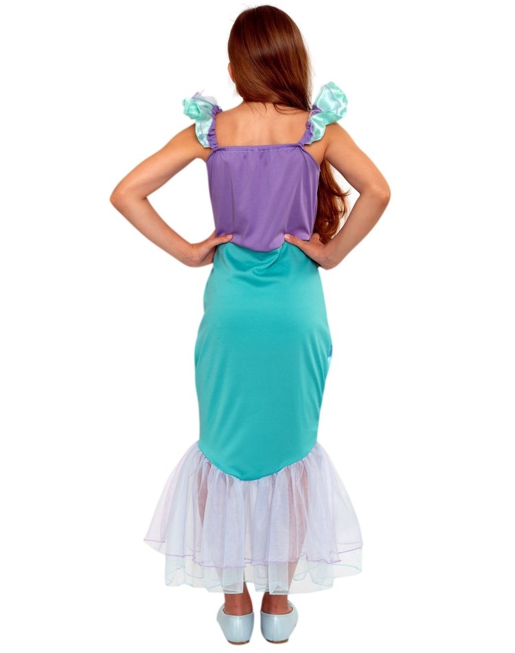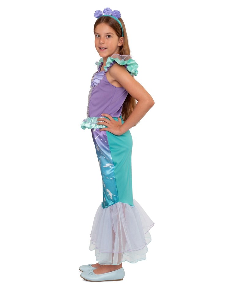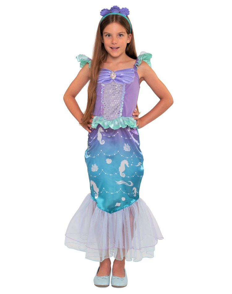 Zeemeermin kostuum voor een meisje. Dit blauwe zeemeerminnen pak bestaat uit een zeemeermin jurk en een hoofdband.